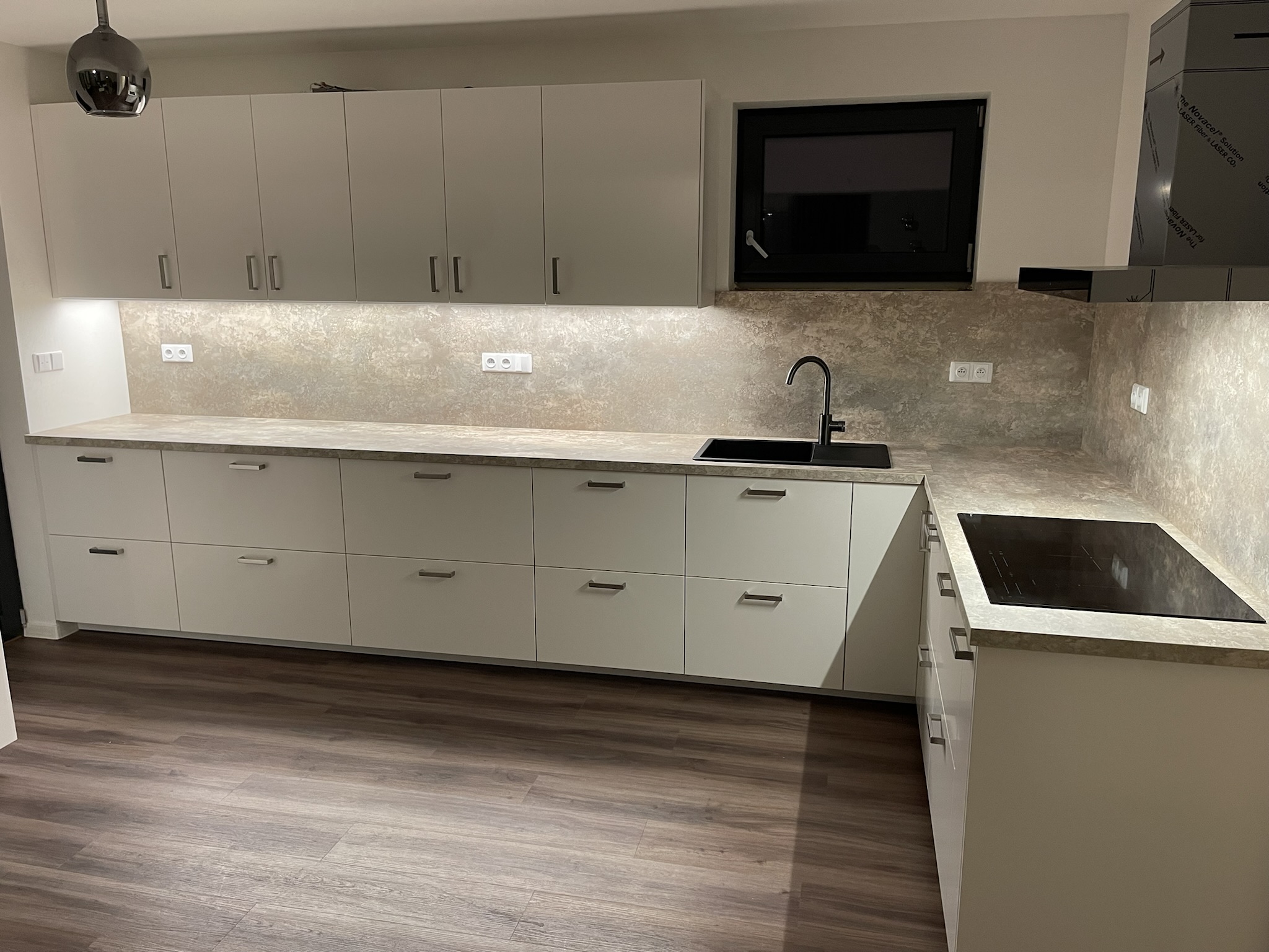 Kuchyně spojuje elegantní design s praktickou funkcionalitou. Hlavním prvkem této kuchyně jsou dvířka v provedení bílá lesklá Ikea Ringhult, která dodávají prostoru svěží a moderní vzhled.Pracovní deska a zástěny, neboli obkladový panel, jsou vyrobeny z materiálu Metal Rock Antracit, který zajišťuje odolnost a snadnou údržbu, aniž by se ztratila jejich estetická hodnota. Tato kombinace materiálů vytváří harmonický celek, který je nejen stylový, ale i funkční.Kuchyň Ikea spolu s mnou dodávanými pracovními deskami a zástěnami poskytuje optimální prostor pro vaření, přípravu jídel a společné setkání s rodinou a přáteli. Spotřebiče značky Beko zajišťují spolehlivý provoz a moderní vybavení, které usnadňuje každodenní používání kuchyně.Pro dokonalé osvětlení prostoru slouží LED osvětlení z Ikea, které dodává kuchyni příjemnou atmosféru a zvýrazňuje každý detail jejího designu.Kuchyň Ringhult je ideální volbou pro ty, kteří hledají moderní a funkční kuchyni s prvotřídní kvalitou a designem, který osloví každého.
